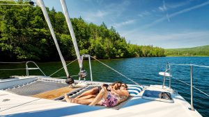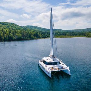 The Cape Bretoner 1, a spacious 42′ Alpha Catamaran, is owned and operated by Sailing Cape Breton Island Inc. The boat comfortably sleeps six overnight passengers (3x couples), and features two full washrooms with showers – as well as a spacious kitchen with ample food prep area. The main deck has plenty indoor and outdoor space for lounging, entertaining, sightseeing, or stargazing on the beautiful Bras d’Or Lake.